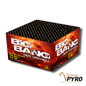 Feuerwerksbatterie mit 49 Schuss, lautstarker Zerlegung und großen Buketts.