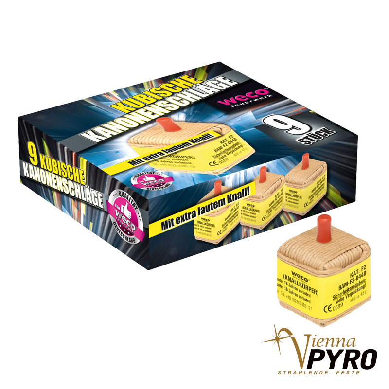 9er Kubische Kanonenschläge mit extra lautem Knall in Faltschachtel