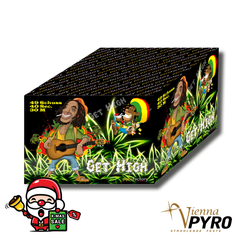 Feuerwerksbatterie mit 49 Schuss, lautstarker Zerlegung und großen Buketts.